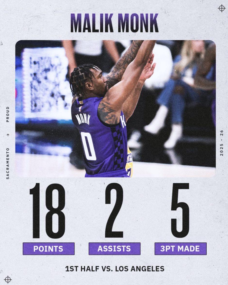 蒙克本赛季在国王的阵容中已经不算主力,他此前被连续DNP了7场比赛,但对阵火箭一战他拿到15分,此役面对老东家湖人他第二节的表现那叫一个炸裂,单节7中6+三分6中5+罚球1中1拿到18分1助攻,湖人替补4人半场合计只有4分。