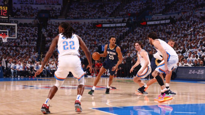 1[微博视频-国语中文]2024年4月25日NBA季后赛西部第一轮G2 鹈鹕vs雷霆 第一节录像回放