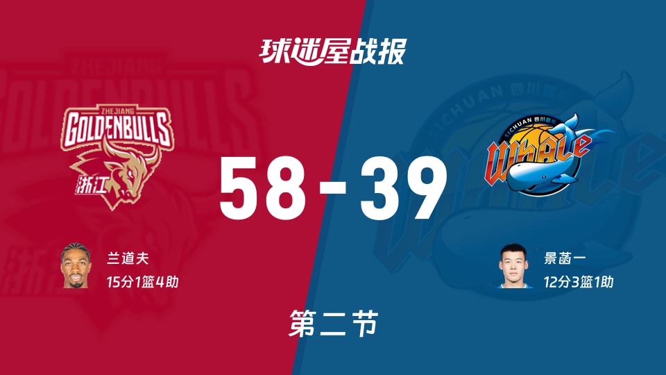 1球迷屋1月12日讯,2025-2026赛季CBA常规赛,浙江vs四川,第二节完,当前比分为58-39。四川上半场并没有缩小分差,分差在本节反而被进一步拉开,下半场需要调整战术和状态。球员表现浙江的兰道...