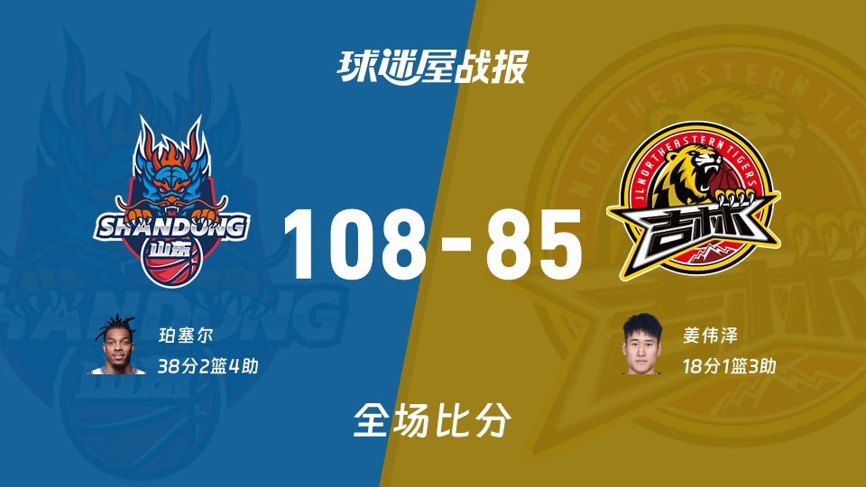 4球迷屋1月14日讯,2025-2026赛季CBA常规赛,山东vs吉林于1月13日19:35开赛:第一节比赛结束,山东领先16分;半场战罢,山东领先15分,半场比分为58-43;三节结束后,山东依然确立...