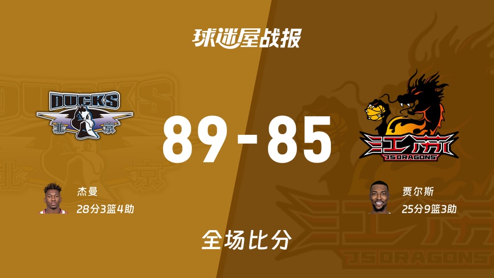 4球迷屋1月14日讯,2025-2026赛季CBA常规赛继续进行中,本场比赛由北京主场迎战江苏,经过刺激对决,最终北京凭借主场优势,锐不可当,以89-85战胜江苏。北京:杰曼28分3板4助、陈盈骏14分...